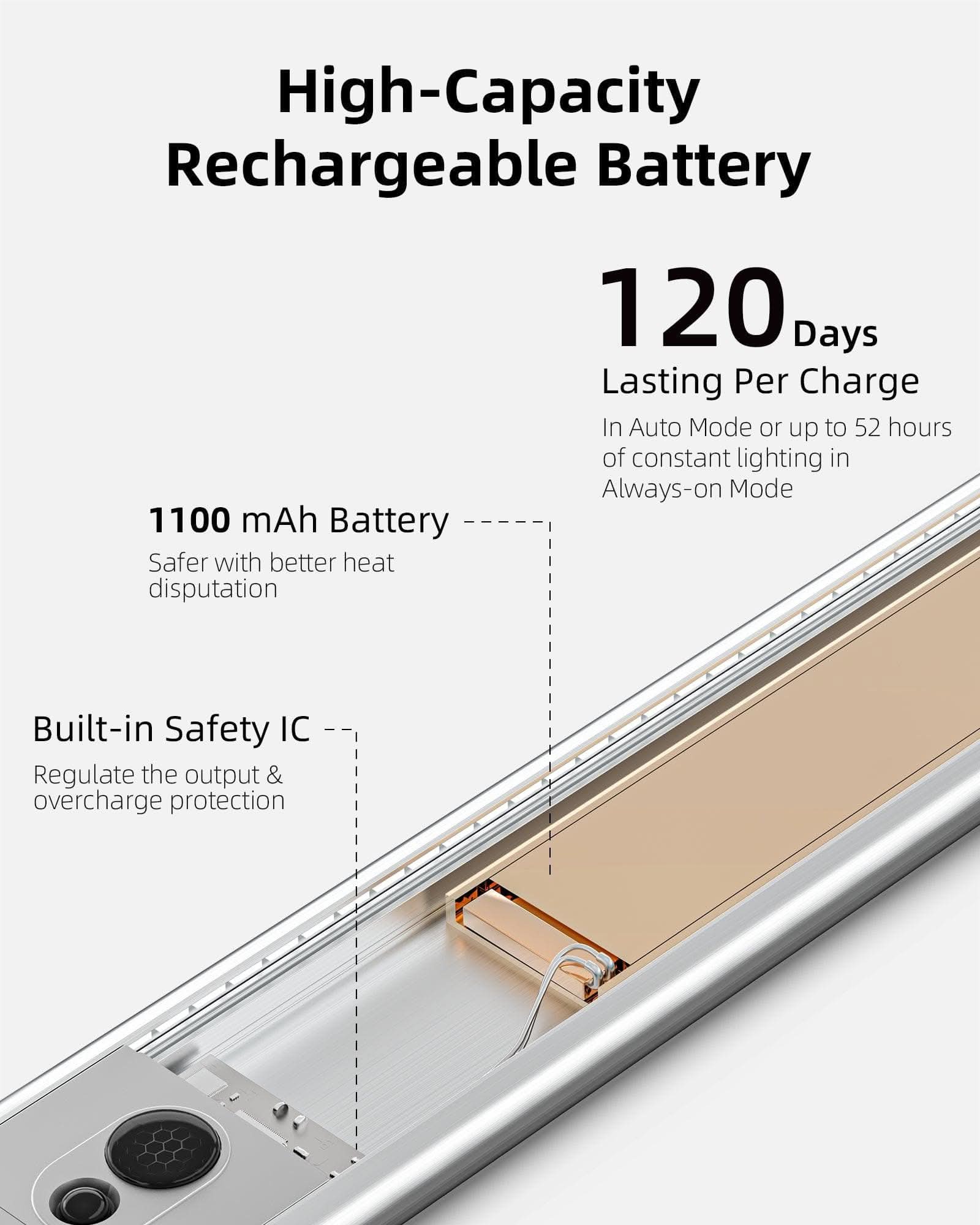 Equipped with a 1600mAh high-density lithium-polymer battery, this motion sensor light offers:-